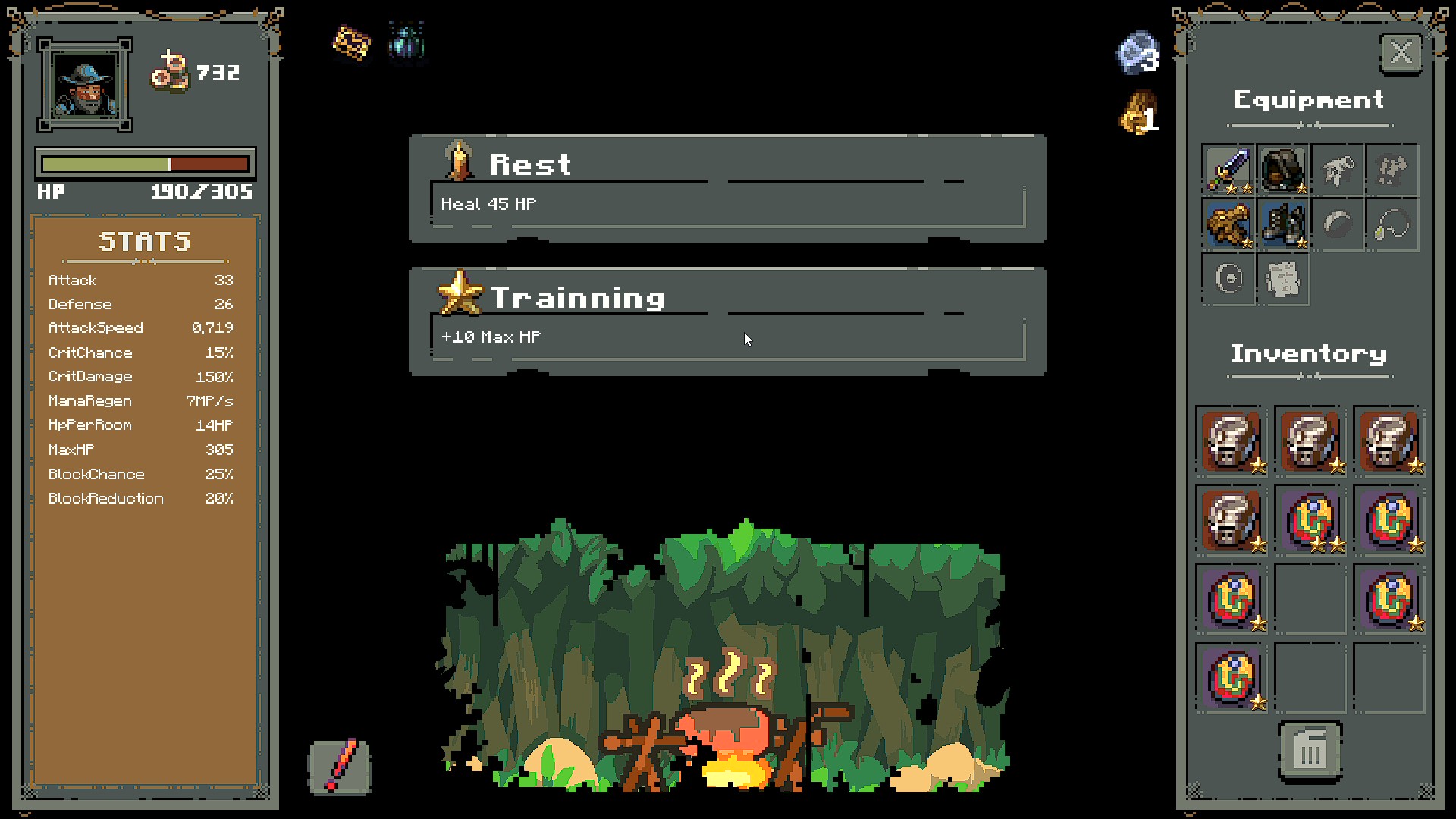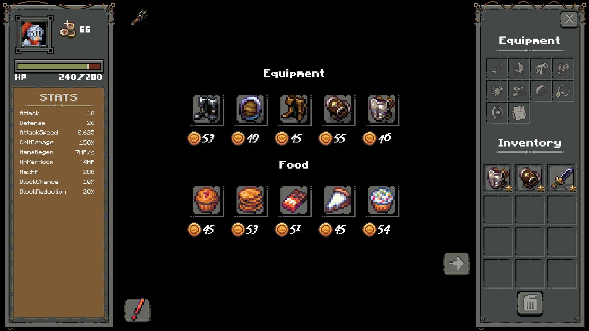 Gather resources, empower your hero, and conquer branching maps to defeat the final boss. Victory demands smart inventory management and bold decision-making.